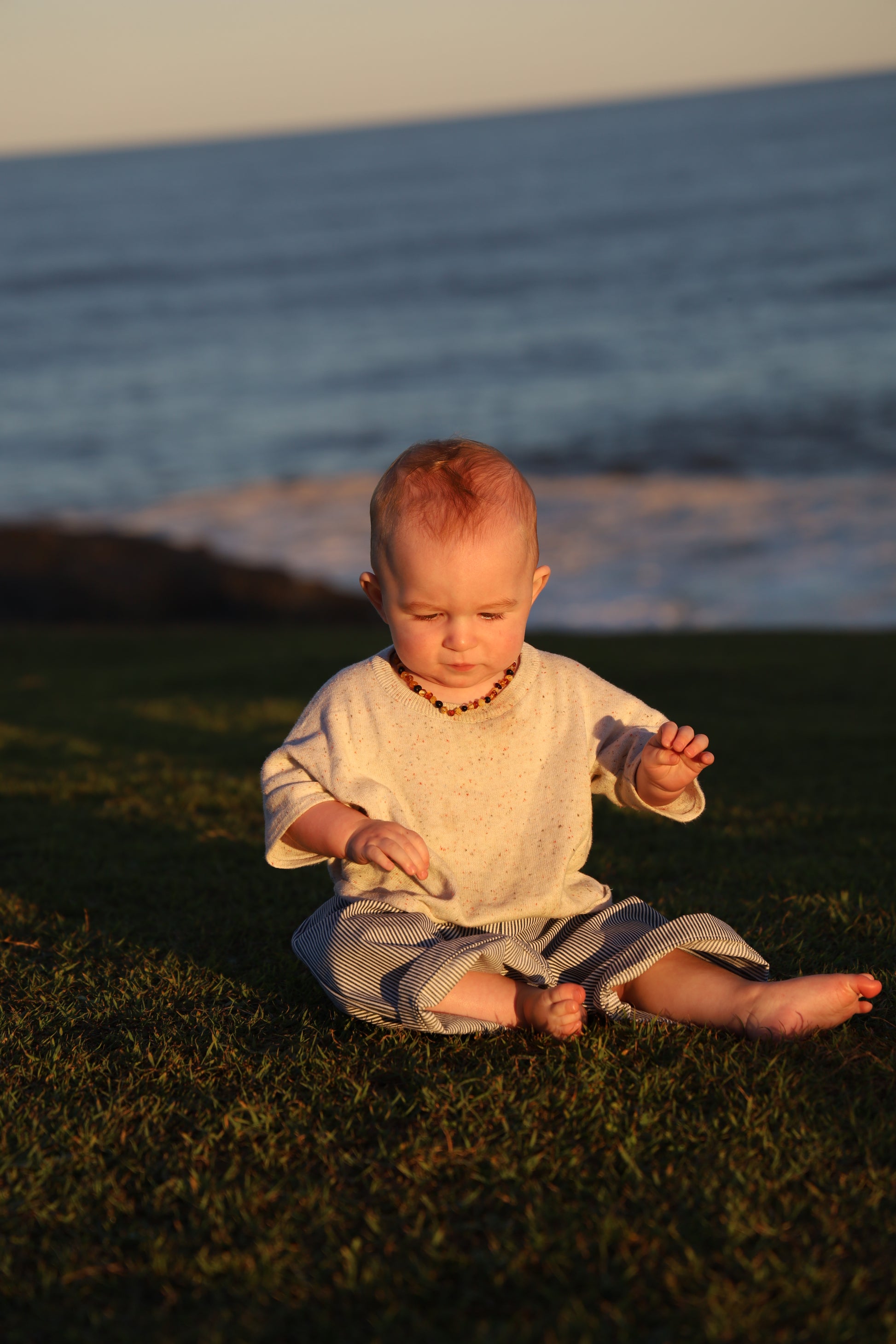 They are made with a super stretchy non roll elastic waistband (because we know there's nothing worse then trying to untwist your kids waistbands). We have also designed our pants to be able to be rolled to allow for sizing up, this coupled with our super stretchy waist allows for extended wear time.